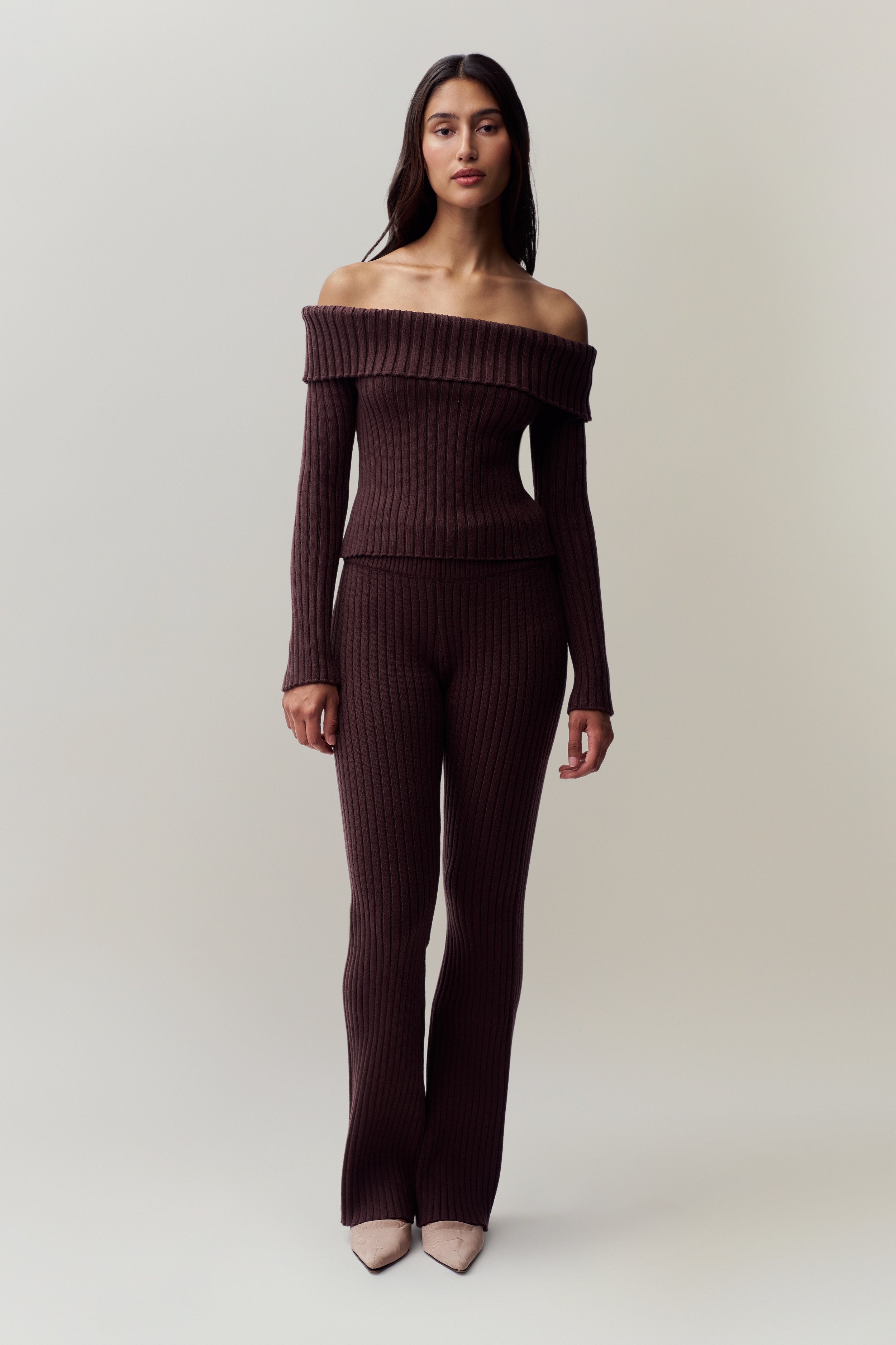 - The Thalia Off-Shoulder Sweater, with Persian knit rib, drapes beautifully for a refined look. The off-shoulder design adds a chic twist, perfect for any occasion. Comfortable, stylish, and versatile - this sweater is a must-have! Pairs with Thalia Rib Pants. - Fabrication: Fine Short Hair Mink Yarn; 72% Viscose, 28% Poly - Sonali is wearing a size S and is 5'10" with a 31" bust, 35" hips, and 23" waist