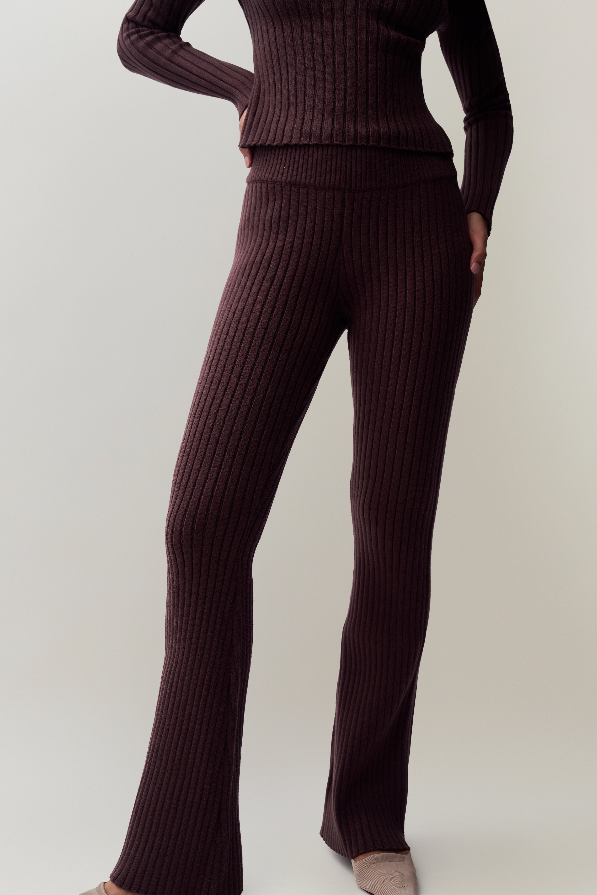 - Elevate your everyday outfit with our newest addition, the Thalia Rib Knit Pant featuring a thick banded waist. Perfectly crafted for those who value style and comfort, these versatile pants are the ideal choice for both lounging at home and stepping out in chic fashion. - Fabrication: Fine Short Hair Mink Yarn; 72% Viscose, 28% Poly - Sonali is wearing a size S and is 5'10" with a 31" bust, 35" hips, and 23" waist