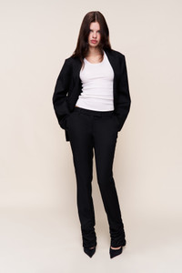 - The Perfect Oversized Blazer is cut with a relaxed, boxy silhouette for effortless layering. Featuring a notched lapel, two-button front closure, and flap pockets, it blends tailored structure with a modern oversized fit. - Noa is wearing a size S and is 5'10" with a 29" bust, 35" hips, and 23.5" waist