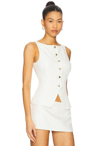 - Self: 80% polyester 15% rayon 5% spandex Lining: 97% polyester 3% spandex - Hand wash - Front gold-tone button closure - Faux pocket at breast - Back tie-up accent - Crepe fabric - Item not sold as a set - Revolve Style No. DGUI-WS204 - Manufacturer Style No. P25107W142