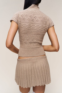 - A refined take on the everyday top. Made from soft, sculpting stretch fabric that contours the body while maintaining comfort. Designed with a mock neckline and short sleeves for a sleek, minimalist finish. Pairs perfectly with the Vivienne Mini Skirt for a complete look. - Composition: 45% Nylon, 45% Viscose, 5% Angora Wool, 5% Wool - Sonali is wearing a size S and is 5'10"" with a 31"" bust, 35"" hips, and 23"" waist