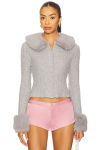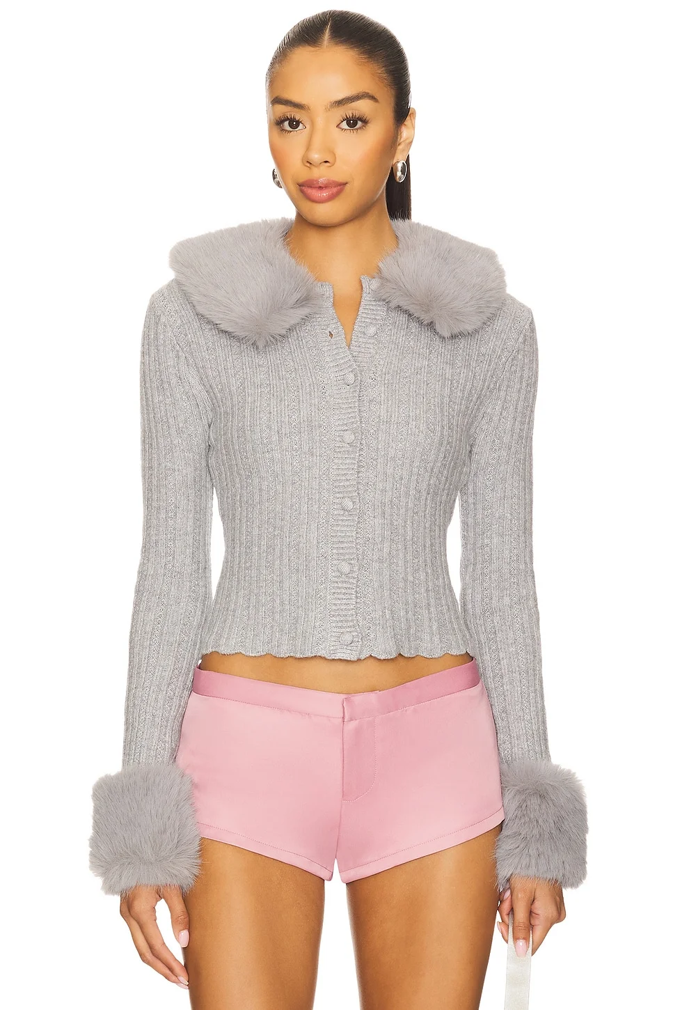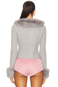 x REVOLVE Heart Faux Fur Knit Cardigan