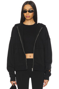 - 65% polyester 35% cotton - Machine wash - Front zip closure - Attached hood with ear design - Front slant pockets - Back embellished logo - Heavyweight knit fabric with fleece lining - Item not sold as a set - Revolve Style No. DGUI-WK66 - Manufacturer Style No. X25705K083