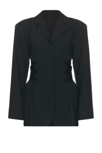 - A blazer dress with a fashion twist: 100% wool, padded shoulders, and sharp tailoring that gives you a cinched-at-the-waist, sophisticated silhouette - .Imported - Single worsted wool suiting - Dry clean recommended - Fully lined - Button down closure - Shoulder pads - Corset-like cinch bands on waist - Revolve Style No. HELO-WD2 - Manufacturer Style No. HAD10025 H25