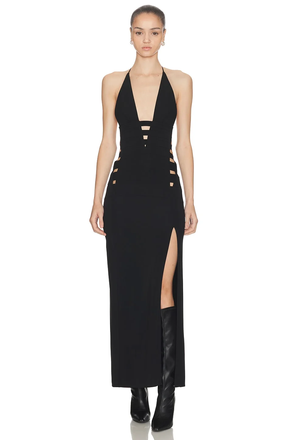 - Fluid, modern, and refined, this deep-V dress is effortlessly elegant - An adjustable halter ensures it will fit just right - .Made in China.96% viscose 4% elastane - Dry clean - Unlined - Back zipper closure - Deep V neck - Racerback straps - Revolve Style No. HELO-WD5 - Manufacturer Style No. HAD10002 H25
