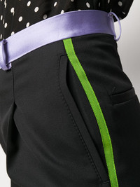 Bondi stripe detail trousers Highlights - Black/lavender/green - Virgin/cotton-silk blend - Stripe detailing - High waist - Belt loops - Concealed front fastening - Two side inset pockets Imported Composition Outer: Silk 100%, Virgin Wool 100% Lining: Cotton 63%, Silk 37% SIZE & FIT Model measurements Height 5 ft 11 in(1.8 m) Bust/Chest 33.07 in(84 cm) Hips 37.4 in(95 cm) Waist 25.19 in(64 cm) FittingInformation This piece fits true to size. We recommend you get your regular size Designed to be fitted at the waist and hips, loose over the leg Made with a mid-weight non-stretch fabric Washing instructions Dry Clean Only