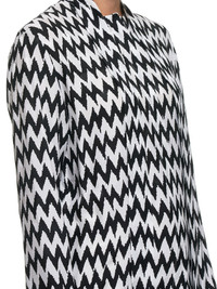 Haider Ackermann patterned shirt in black/white, shawl collar, concealed front button placket, long sleeves, straight/finished hem, tonal stitching. Made in Macedonia. Composition - 70% Rayon/Viscose, 30% Silk Model is 5ft 8” and wearing a size S. Bust: 32” Waist: 26” Hip: 36"