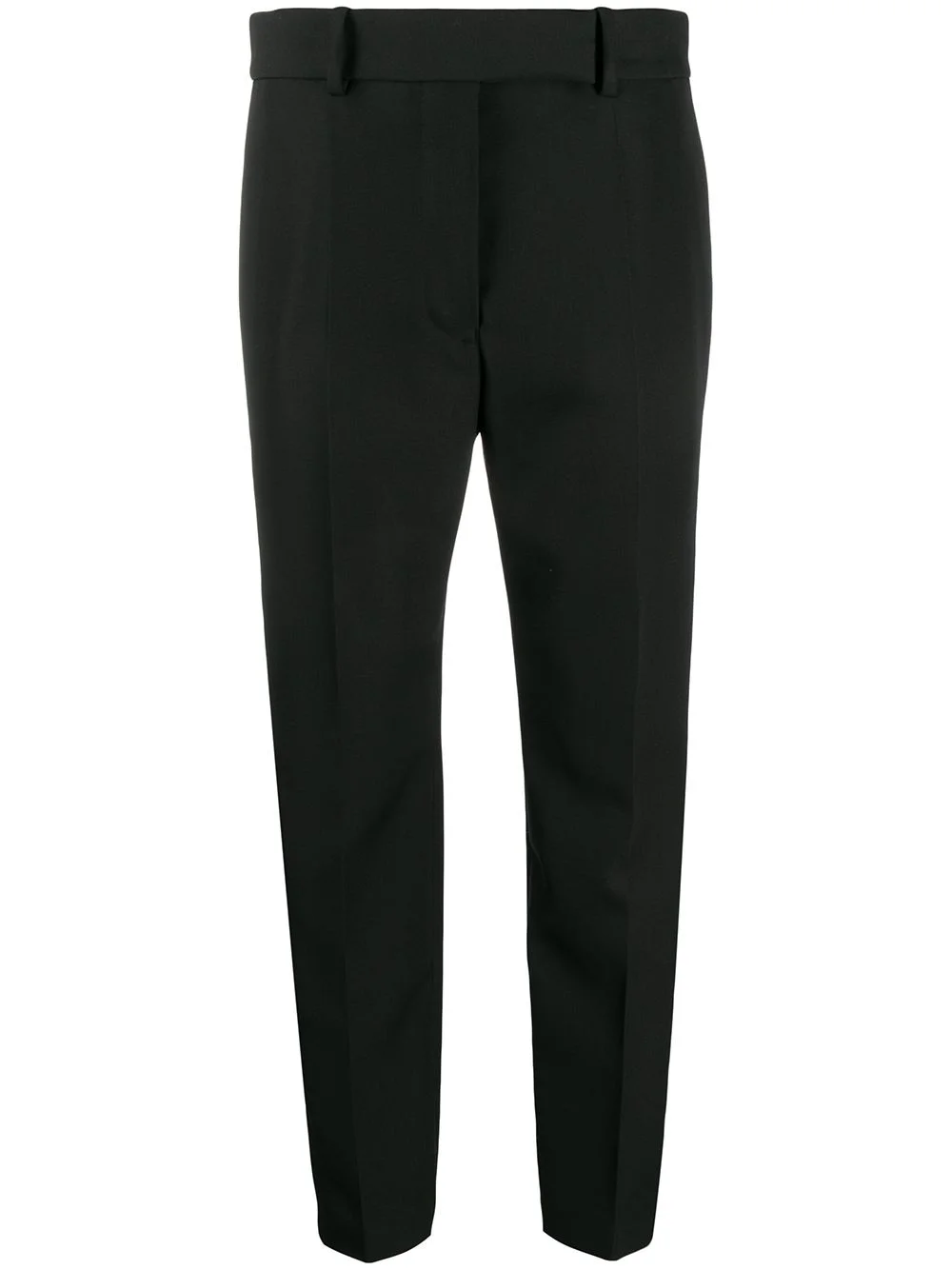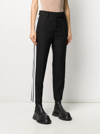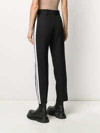 slim-fit trousers Black virgin wool slim-fit trousers from Haider Ackermann featuring a high rise, belt loops, a slim fit, contrast stripe trims and a concealed hook and zip fastening. Imported Composition Lining: Cotton 51%, Rayon 49% Outer: Virgin Wool 100% SIZE & FIT FittingInformation This piece fits true to size. We recommend you get your regular size Cut for a slim fit Made with a mid-weight non-stretch fabric Washing instructions Dry Clean Only
