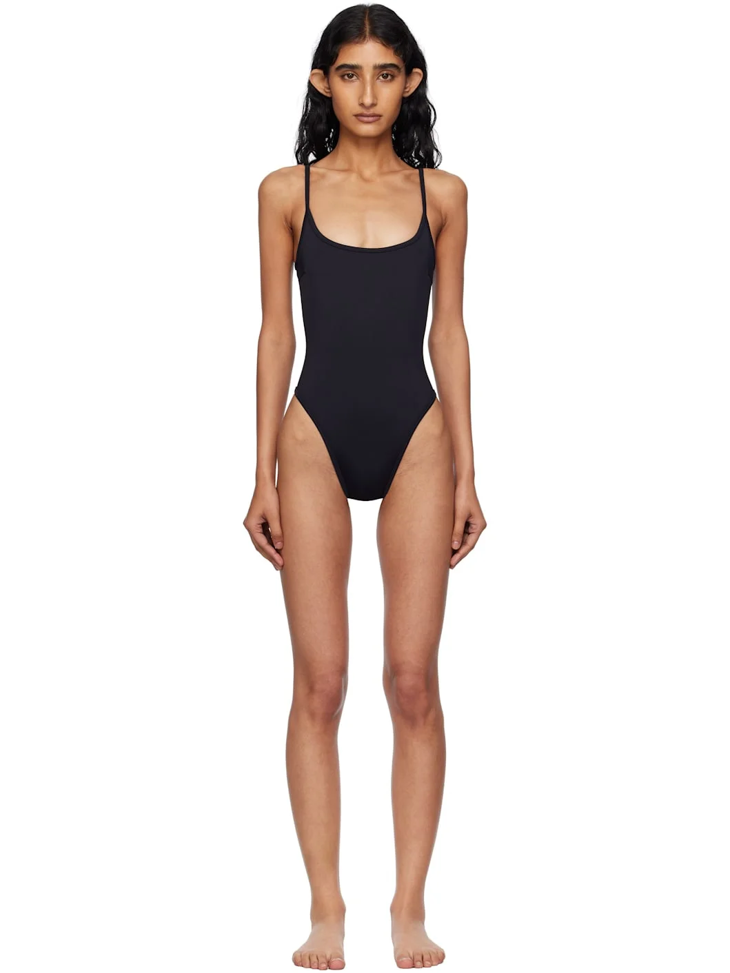 Stretch nylon jersey one-piece swimsuit. · OEKO-TEX®-certified · UPF 50+ protection · Scoop neck · Adjustable spaghetti straps · Low back · Fully lined Supplier color: Black 82% polyamide, 18% elastane. Made in Brazil 252207F103002