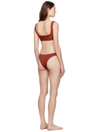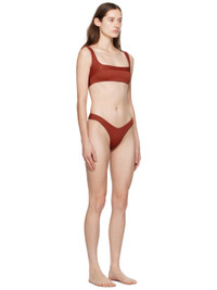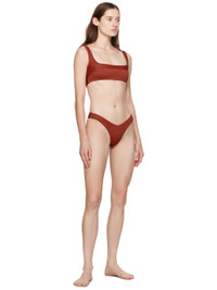 Ribbed stretch nylon jersey bikini top. UPF 50+ UV protection. · Paneled construction · Square neck · Fixed shoulder straps · Full stretch nylon jersey lining Ribbed stretch nylon jersey bikini bottoms. · UPF 50+ UV protection · Full stretch nylon jersey lining Supplier color: Bordeaux Body: 98% polyamide, 2% elastane. Lining: 87% polyamide, 13% elastane. Made in Brazil 241207F105003