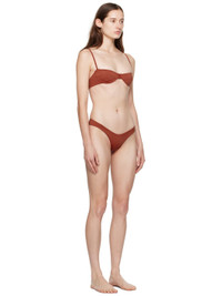 Stretch nylon jersey bikini top. · Sweetheart neck · Darts at chest · Underwire at cups · Adjustable shoulder straps · Tab-slot closure at back · Fully lined Stretch nylon jersey bikini bottoms. Fully lined. Supplier color: Bordeaux 87% polyamide, 13% elastane. Made in Brazil 241207F105001