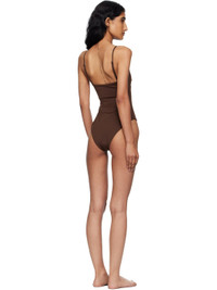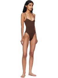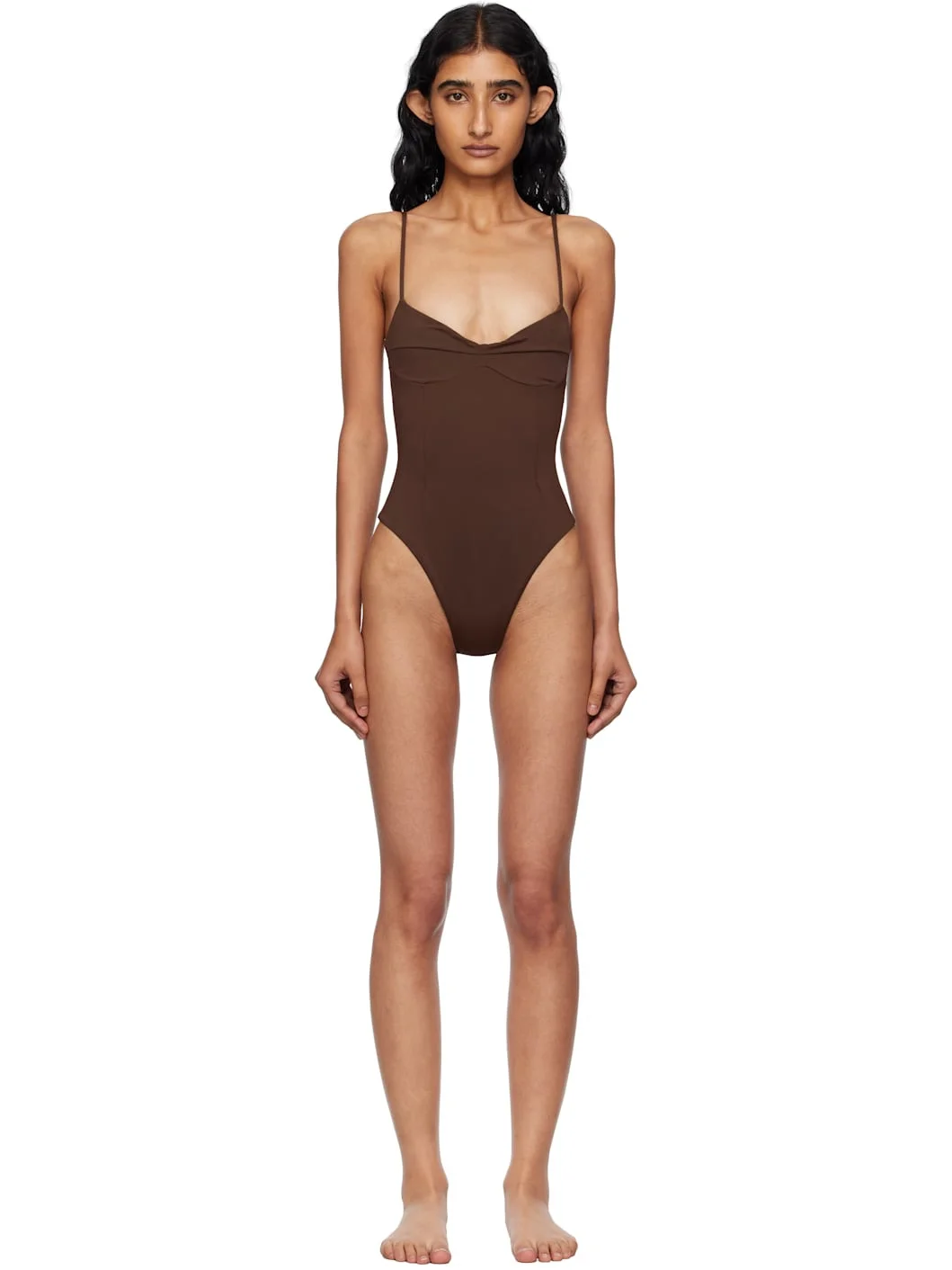 Stretch nylon jersey one-piece swimsuit. · OEKO-TEX®-certified · UPF 50+ protection · Sweetheart neck · Darts at front and back · Adjustable shoulder straps · Fully lined Supplier color: Brauna brown 87% polyamide, 13% elastane. Made in Brazil 252207F103007