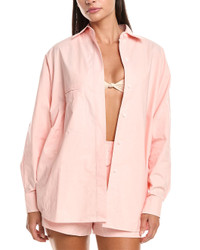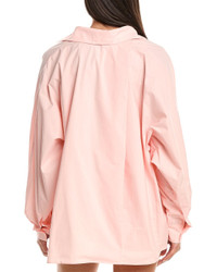 - Color/pattern: soft pink - Approximately 29in from shoulder to hem - Model is 5'9 and is wearing a size small. Measurements may vary slightly by size. - Design details: spread collar, chest pocket and button cuffs - Button front - 100% cotton - Machine wash - Imported