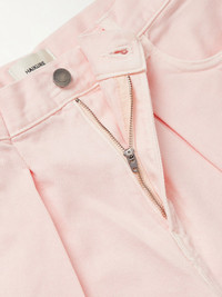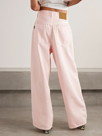Haikure's 'Candy' jeans have sculptural pleats that make them look and feel effortlessly cool. They've been made locally in Italy from denim with touches of cotton and Lyocell and come in a pretty pastel-pink. Responsible Craftsmanship. This product promotes artisanal skills and a brand that invests in communities and adheres to fair-trade principles. Find out more about our NET SUSTAIN criteria here. Size & Fit - Fits true to size, however those who are between sizes should take the smaller size - Boyfriend style, designed to be worn loose and low on the hips - Mid-weight, non-stretchy denim - Size 26 jeans have an inside leg of 32"/ 81cm - Model is 175cm/ 5'9" and is wearing a size 26 Details & Care - Pastel-pink denim - Button and concealed zip fastening at front - 60% cotton, 40% Lyocell - Machine wash