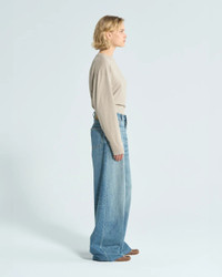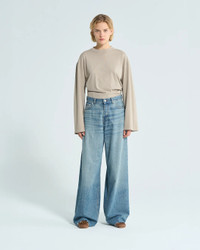The Bethany Ionic Blue Jean by Haikure is a wide leg jean featuring a button fly closure, 5-pocket design, and whiskering detail at the front. #HEW03296DF144L0876
