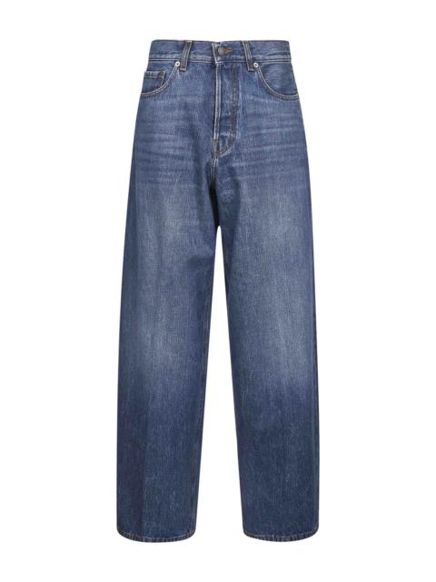 - Covered front closure, metal logo button - Relaxed waistband with belt loops - Five-pocket model - Logo patch at back waistband - Extra long wide leg - Ionic blue wash cotton denim design - Over boyfit fit - Blue color - 100% cotton - Made in italy Natural (Veg): Cotton100 % Made in: Italy Season: P25 HEW03296DF144L0876