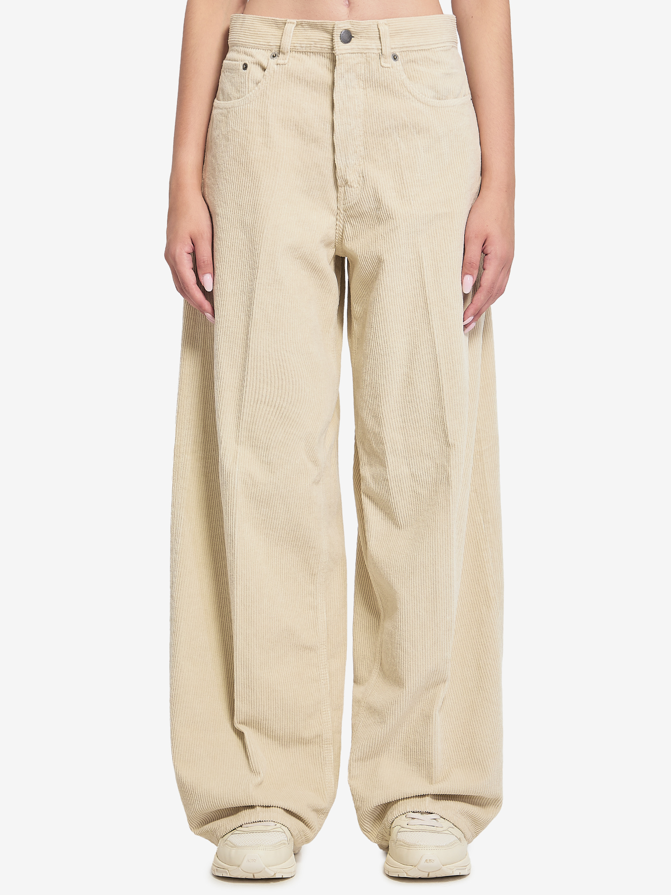 Ecru cotton trousers. Featuring belt loops, a five-button closure, logo patch on the back, wide leg, straight hem, and a ribbed, velvety texture. Relaxed fit. The model is 178 cm tall and is wearing size 26 US. More Info Product Number : 3219150 Product Code : HEW03296GF156PTT0336 The model is 178 cm tall and is wearing size 26 US. Composition : 100% cotton Made in: Italy
