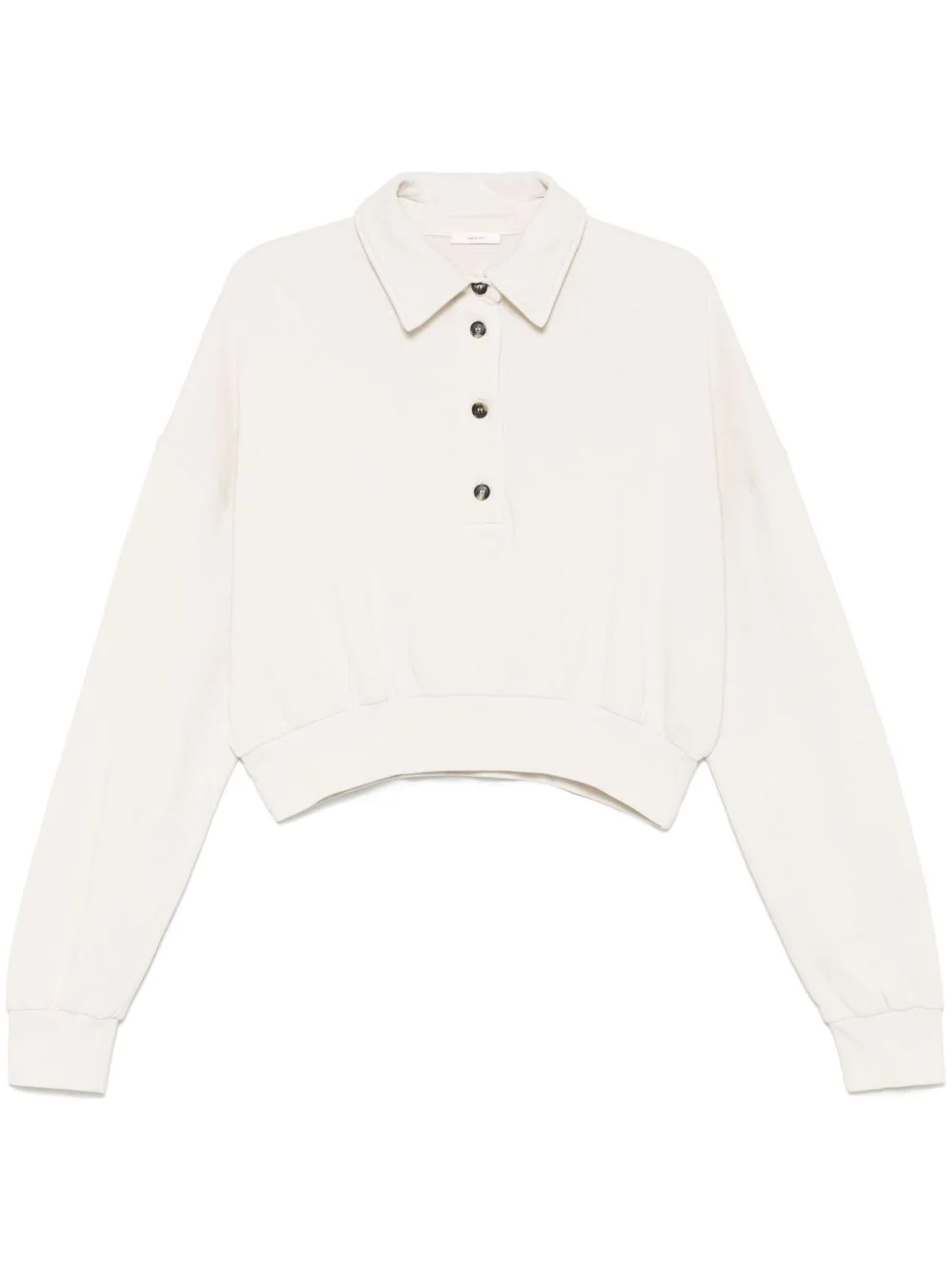 Edie polo top Highlights - Ecru - Front button placket - Polo collar - Drop shoulder - Ribbed cuffs and hem Made in Italy Composition Cotton 100% SIZE & FIT Model measurements Height 5 ft 11 in(1.8 m) Bust/Chest 32.67 in(83 cm) Hips 36.22 in(92 cm) Waist 24.4 in(62 cm) FittingInformation Designed to be unstructured, offering a loose fit throughout Cropped in length Made from a midweight non-stretch fabric, this piece offers minimal elasticity when worn Washing instructions Machine Wash