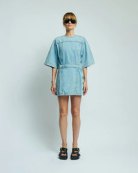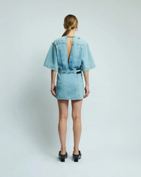 FINAL SALE The Emy Dress in Paradise by Haikure is a short sleeve, mini dress featuring an open back and waist belt. - 100% Cotton - Made in Italy - Halterneck snap closure - Optional belt - #HEW08092DF127L0883