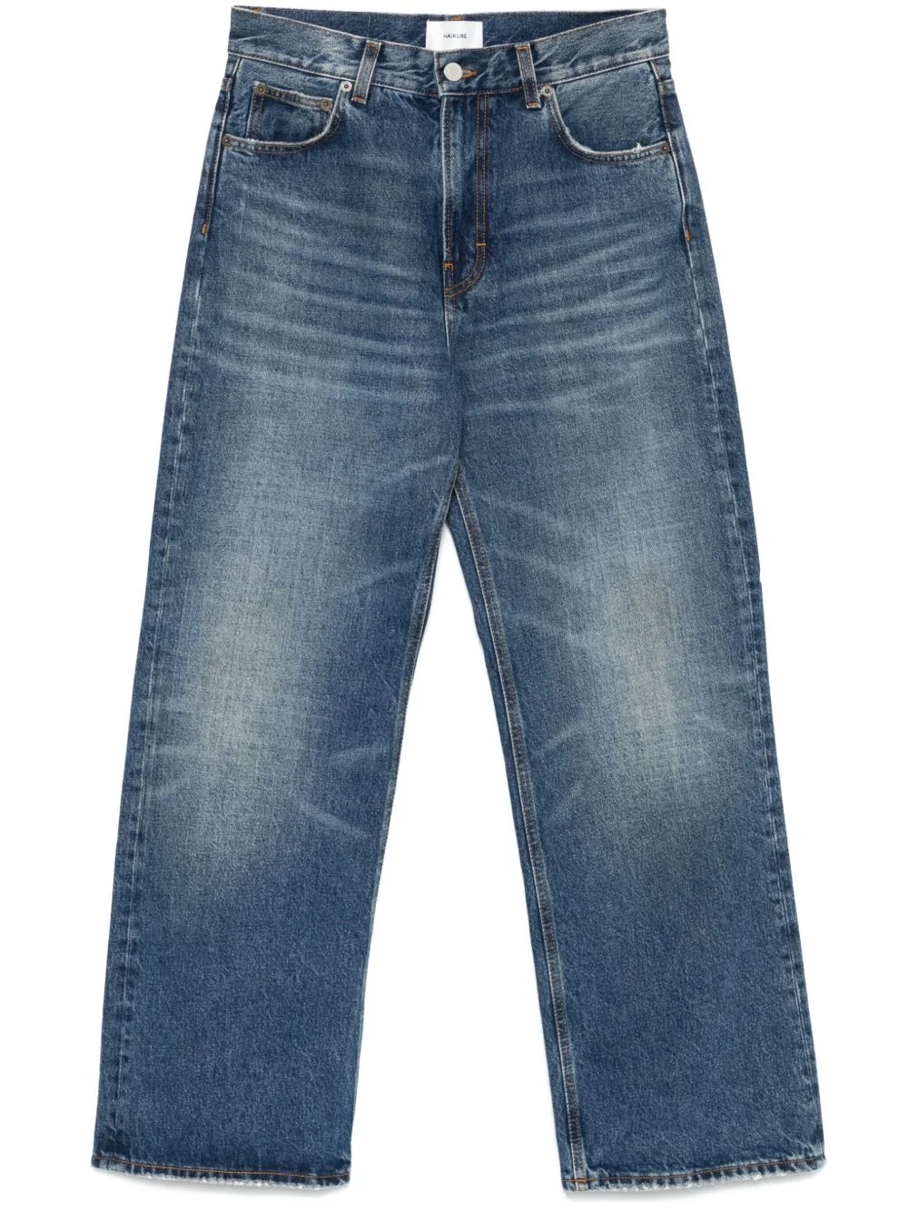 Korea jeans Highlights - Indigo blue - Concealed fly and button fastening - Classic five pockets - Belt loops - Whiskering effect Made in Italy Composition Cotton 100% SIZE & FIT Model measurements Height 5 ft 10 in(1.77 m) Bust/Chest 29.92 in(76 cm) Hips 34.25 in(87 cm) Waist 23.62 in(60 cm) FittingInformation Designed with a wide leg cut, these jeans allow for a close fit at the waist and offer a loose and roomy fit over the leg Sturdy and hard-wearing, this denim piece offers no stretch Washing instructions Machine Wash