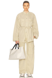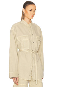 Details - 85% cotton, 15% linen - Made in Italy - Machine wash - Front button closure - Optional belt - Breast flap pockets - Back logo detail - Twill fabric - Item not sold as a set - Our Style No. HKUF-WO1 - Manufacturer Style No. HEW06085GF146PX