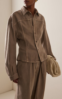 Known for their sustainably crafted jeans, Haikure use organic or Better Cotton Initiative (BCI) certified cotton to produce high quality denim and reduce its environmental impact. Made from washed non-stretch denim, the 'Lee' shirt jacket has a relaxed silhouette that tapers at the waist to a fitted cut. Wear it on its own or layered over a tee or tank. PRODUCT DETAILS - Pre-Fall '25 - Button fastening - Composition: 100% cotton - Designer color: Ecru - Dry clean - Made in Italy SIZE & FIT - Designed for a relaxed fit