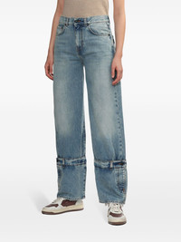 logo-patch straight jeans Highlights - Powder blue - Cotton - Washed denim - Logo patch to the rear - Front button fastening - Belt loops - Classic five pockets - Straight leg Made in Italy Composition Cotton 100% Washing instructions Read Manufacturer Guidelines