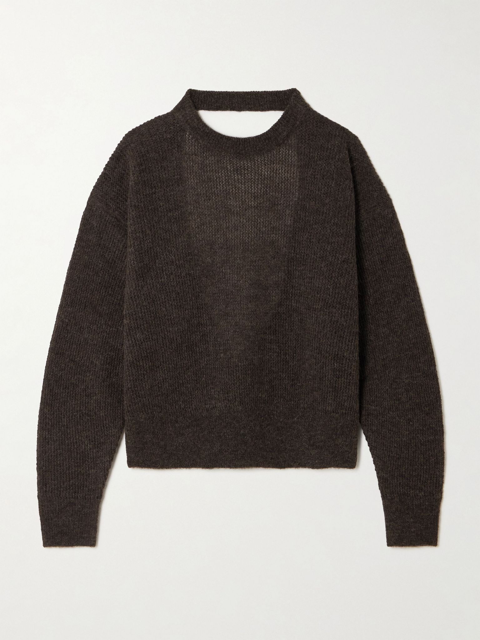 Haikure's ribbed 'Blair' sweater proves knitwear can work for evening, too. It's locally sourced and made with fuzzy alpaca and wool to slouch over your frame and has a deep open back. Wear yours with the label's jeans or leather pants. Responsible Craftsmanship. This product promotes artisanal skills and a brand that invests in communities and adheres to fair-trade principles. Find out more about our NET SUSTAIN criteria here. Size & Fit - Fits true to size, take your normal size - Designed for a relaxed fit - Lightweight knit - Model is 177cm/ 5'10" and is wearing a size XSmall Model measurements: - Bust: 85cm/ 33” - Waist: 66cm/ 26” - Hip: 92cm/ 36” Details & Care - Dark-brown melange alpaca, recycled-nylon and merino wool-blend - Slips on - 49% baby alpaca, 30% recycled nylon, 21% Extrafine merino wool - Unlined - Hand wash