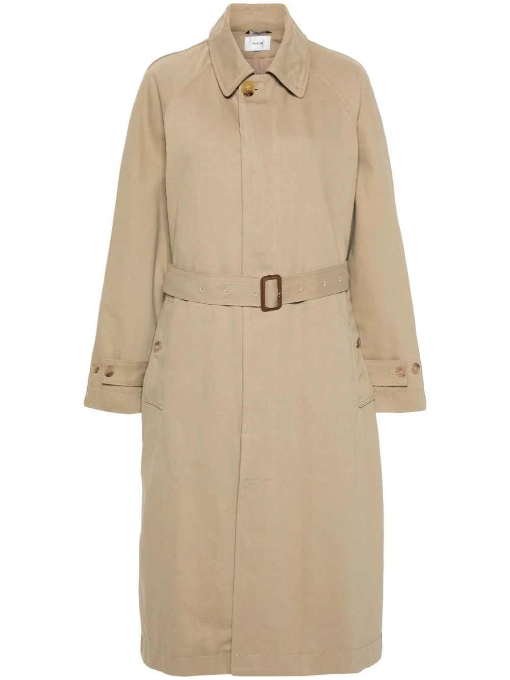 Thatcher trench coat Highlights - Beige - Organic cotton - Padded design - Twill weave - Concealed front button fastening - Straight-point collar - Long sleeves - Belted cuffs - Belt loops - Detachable waist belt - Two side button-fastening pockets - Buttoned central rear vent - Full lining - Straight hem Made in Italy Composition Organic Cotton 100% Washing instructions Machine Wash