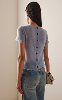 Known for their sustainably crafted jeans, Haikure use organic or Better Cotton Initiative (BCI) certified cotton to produce high quality denim and reduce its environmental impact. Knit from an ultra-fine blend of wool, cashmere and silk, the 'Tiff' top has a buttoned silhouette with rolled raw edges. PRODUCT DETAILS - Pre-Fall '25 - Button fastenings through back - Composition: 80% ultra-merino wool, 10% cashmere, 10% silk - Designer color: Dive - Dry clean - Made in Italy