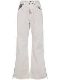 wide-leg jeans Highlights - Light grey - Cotton - Washed denim - Blotch print detail - Belt loops - Side zip fastening - Classic five pockets - Straight wide leg - Concealed fly and button fastening Made in Italy Composition Cotton 100% SIZE & FIT Model measurements Height 5 ft 9 in(1.76 m) Bust/Chest 31.88 in(81 cm) Hips 35.43 in(90 cm) Waist 24.8 in(63 cm) FittingInformation Designed with a wide leg cut, these jeans allow for a close fit at the waist and offer a loose and roomy fit over the leg Sturdy and hard-wearing, this denim piece offers no stretch This piece fits true to size – take your usual size Measurement FRONT RISE 12.51 in(31.8 cm) INSIDE LEG 32 in(81.3 cm) BACK RISE 14.01 in(35.6 cm) HIPS 37 in(94 cm) Hem Width 22 in(55.9 cm) WAIST 30.98 in(78.7 cm)