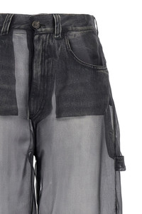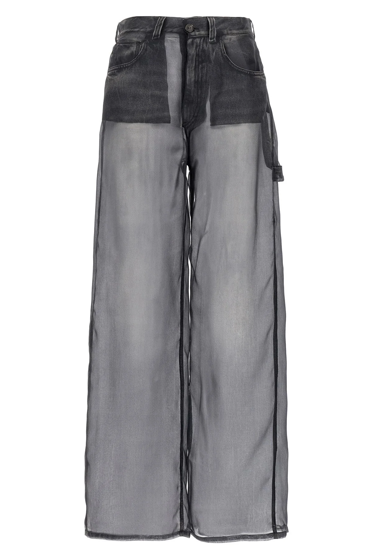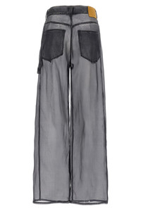 cod. HEW03300OR001L0889L0889 'Winona' semi-transparent silk pants with denim print, wide leg and medium waist, front button closure, pockets, back suede logo tag. Color: Black Size & Fit: Loose fit Composition: 100% silk Made in: Italy