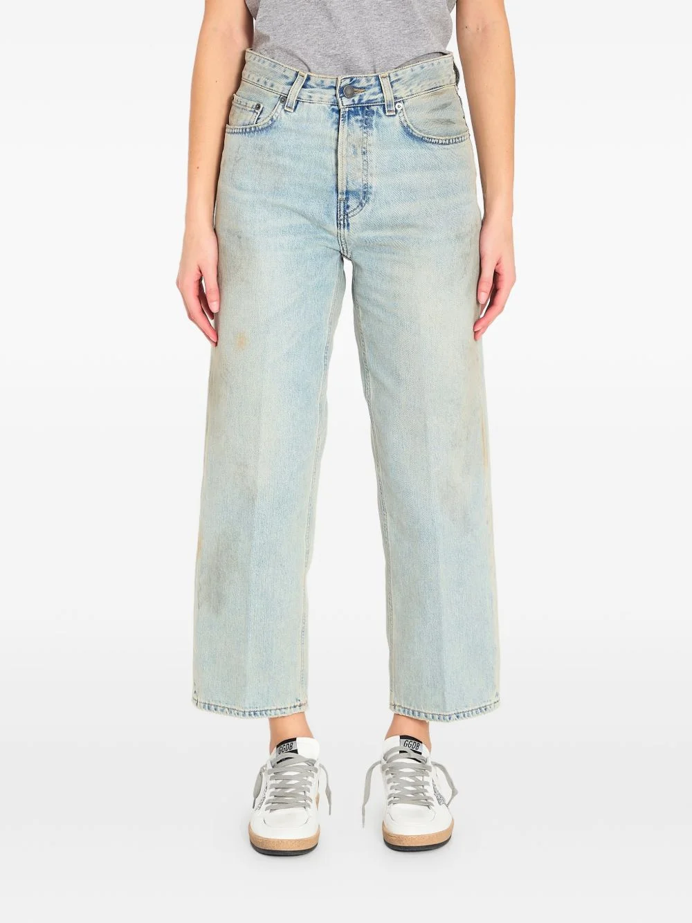 Betty Soft Stained Sky stained denim jeans Highlights - Blue - Five pockets - Belt loops - Logo patch - Front button closure - Ironed creases Made in Italy Composition Cotton 100% Washing instructions Read Manufacturer Guidelines