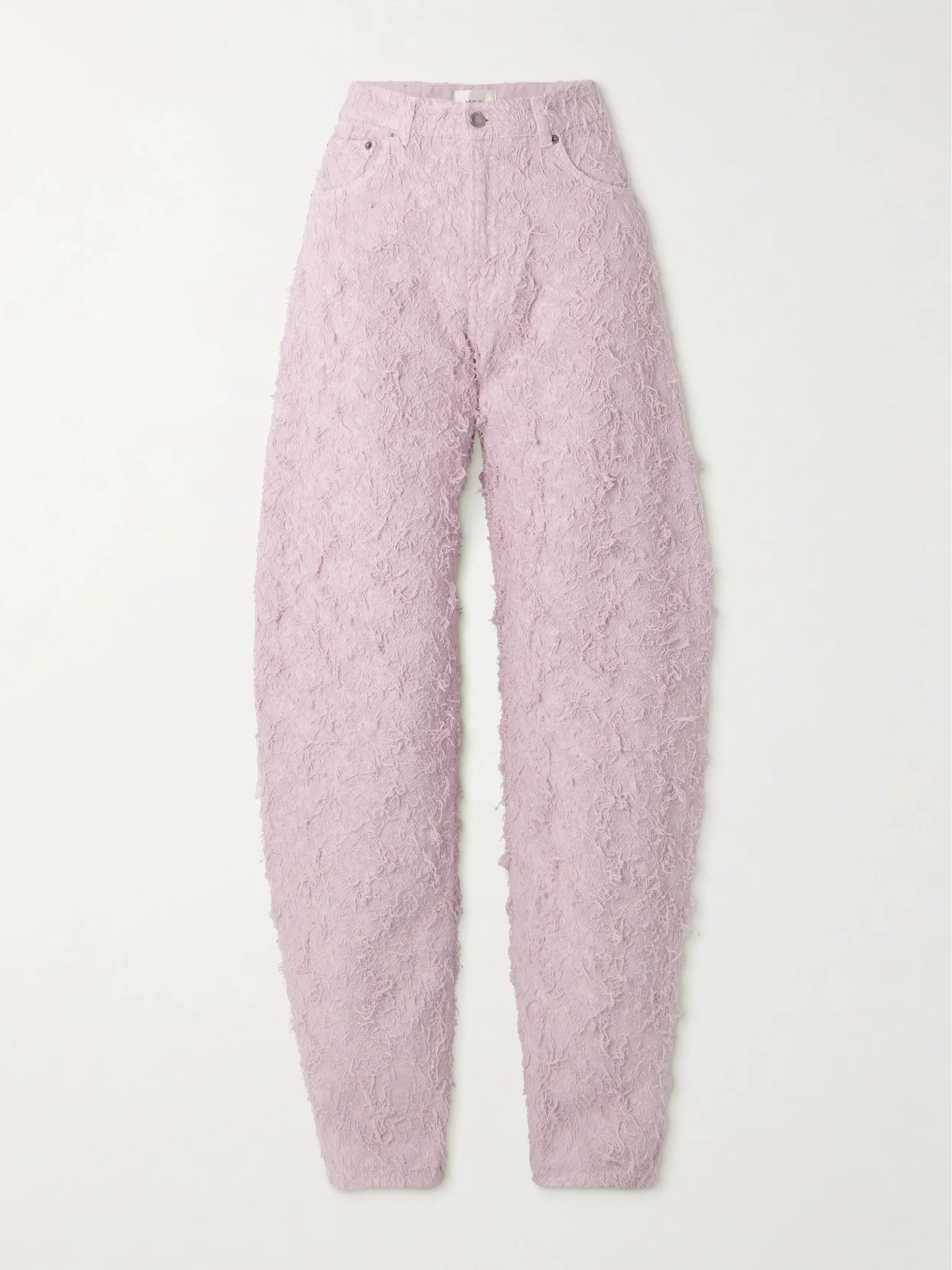 Haikure's jeans are brushed for a wispy, unexpected texture that stands out from classic denim. Cut with wide, barrel-shaped legs, they sit high on the waist and have a five-pocket construction.