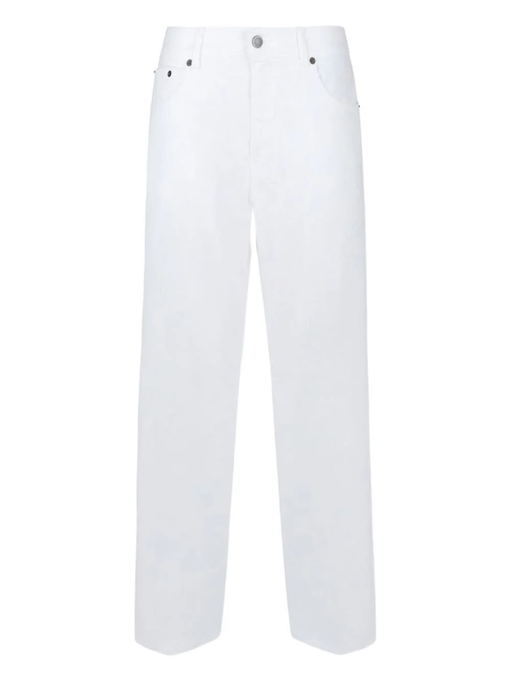 buttoned straight-leg jeans Highlights - White - Five-pocket styling - Button fastening - Logo patch - Straight leg Imported Composition Cotton 80%, Linen/Flax 20% Washing instructions Read Manufacturer Guidelines