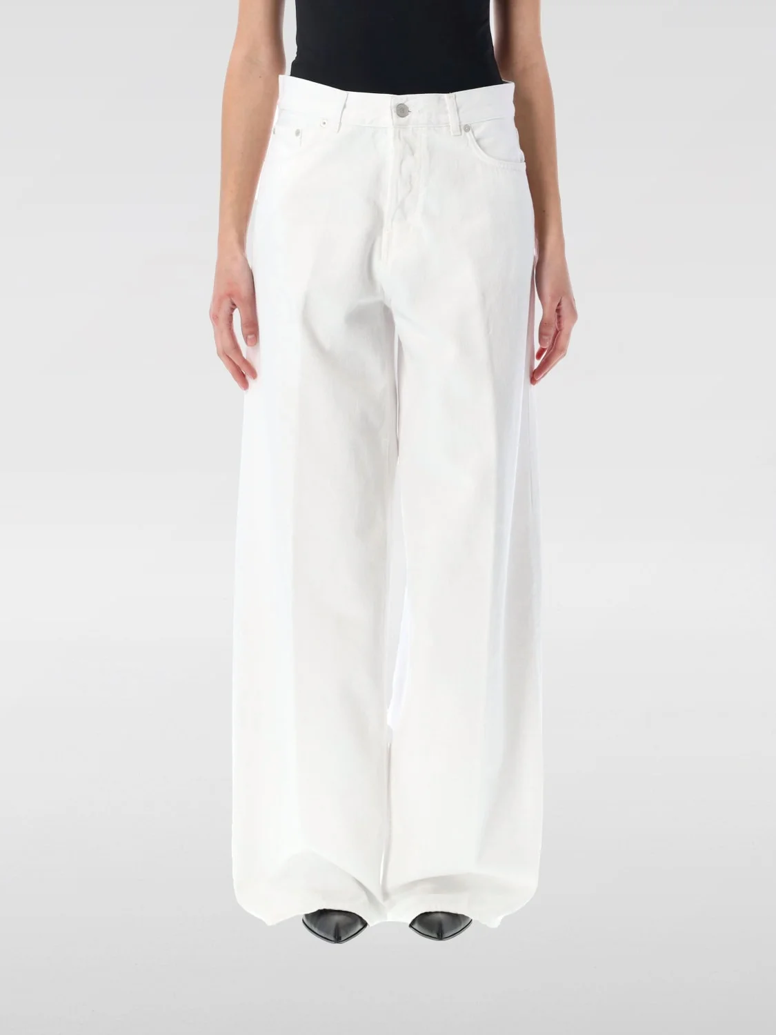 DESCRIPTION - Style: Basic, Casual - Pockets: 5-pocket - Waist: 미디엄 웨이스트 - Bottom: With straight hemline - Closure: With button and zip - Materials: Cotton denim - Pattern: Plain-colored DETAILS AND CARE Composition 100% cotton SIZE AND FIT Sizes not available Size and fit Narrow leg, Regular fit Designer code: HEW03296GF143 T0503 Giglio Code: G72663 Designer: Haikure Collection: Haikure Woman Category: Clothing Haikure