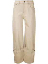 logo-patch jeans Highlights - Beige - Cotton - Denim - Front button and zip fastening - Mid-rise - Belt loops - Classic five pockets - Logo patch to the rear - Straight leg Imported Composition Fabric 100% Washing instructions Dry Clean Only