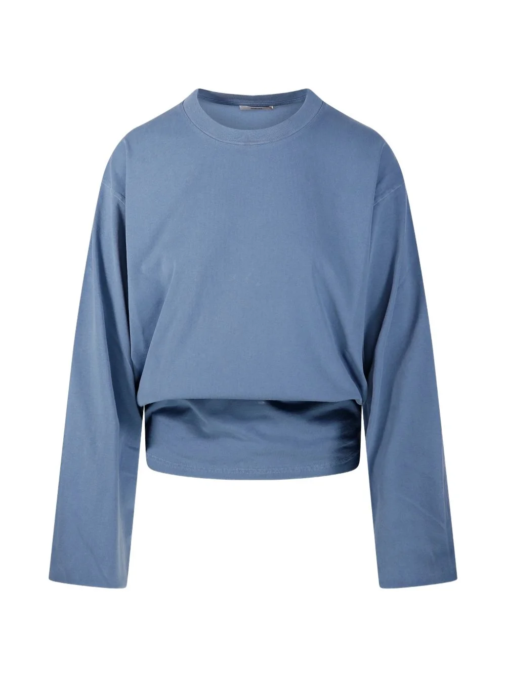 long-sleeved cropped top Highlights - Indigo blue - Round neck - Long sleeves - Cropped - Logo detail at the back Made in Italy Composition Fabric 100% Washing instructions Read Manufacturer Guidelines