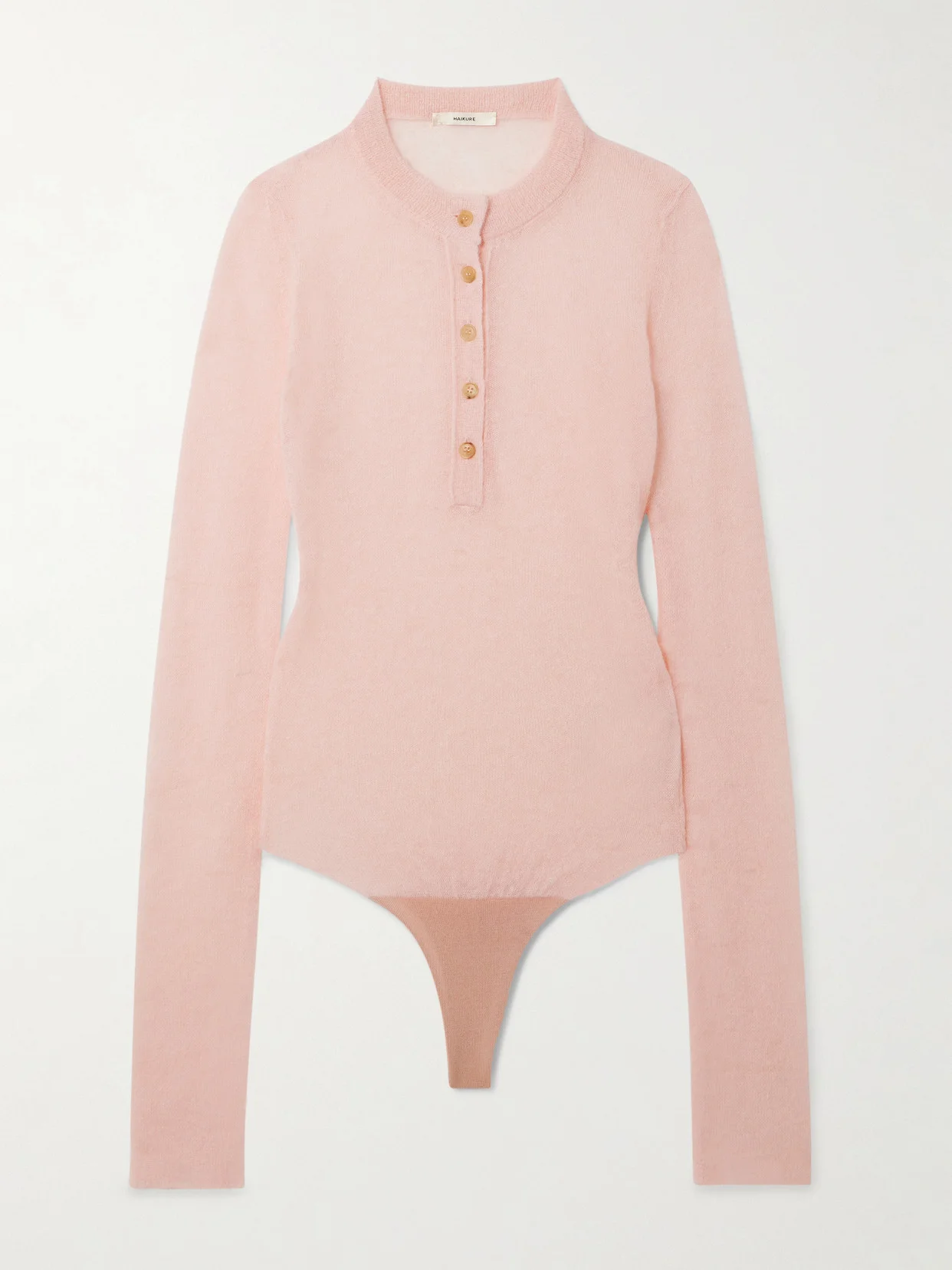 Haikure's 'Lucy' bodysuit has been made in Italy from alpaca-blend with recycled fibers - the fabric is not only soft and light, it's also a bit sheer so be mindful of what you wear underneath. It has adjustable buttons along the neck and a jersey-lined base for comfort.