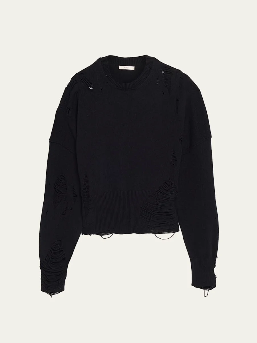 Marcy Distressed Wool Crewneck Sweater
