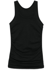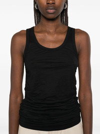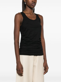 May tank top Highlights - Black - Scoop neck - Sleeveless - Ruched detailing Made in Italy Composition Cotton 100% SIZE & FIT Model measurements Height 5 ft 11 in(1.8 m) Bust/Chest 32.67 in(83 cm) Hips 36.22 in(92 cm) Waist 24.4 in(62 cm) FittingInformation Designed for a slim fit that sits just away from the body offering a close yet comfortable fit Made from a midweight non-stretch fabric, this piece offers minimal elasticity when worn Washing instructions Machine Wash