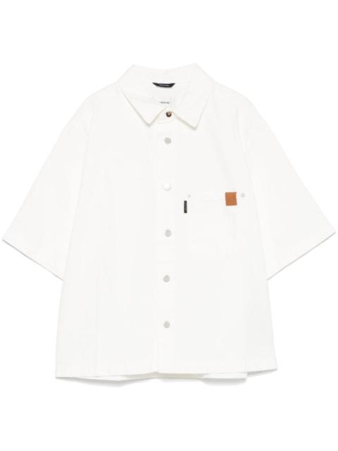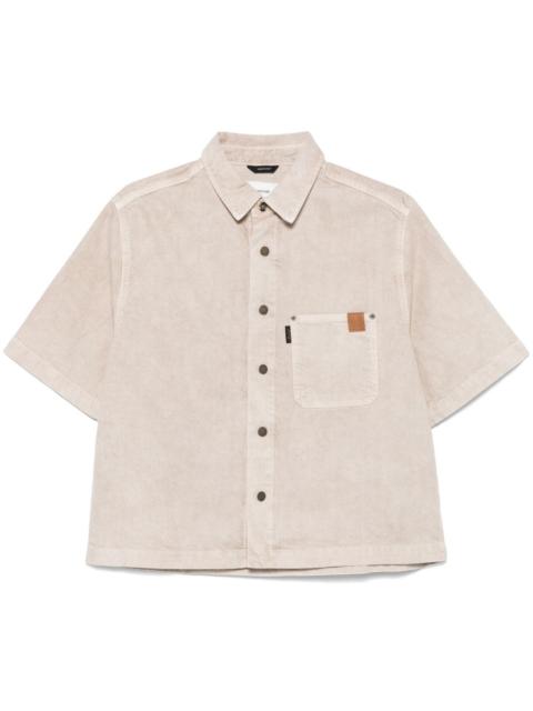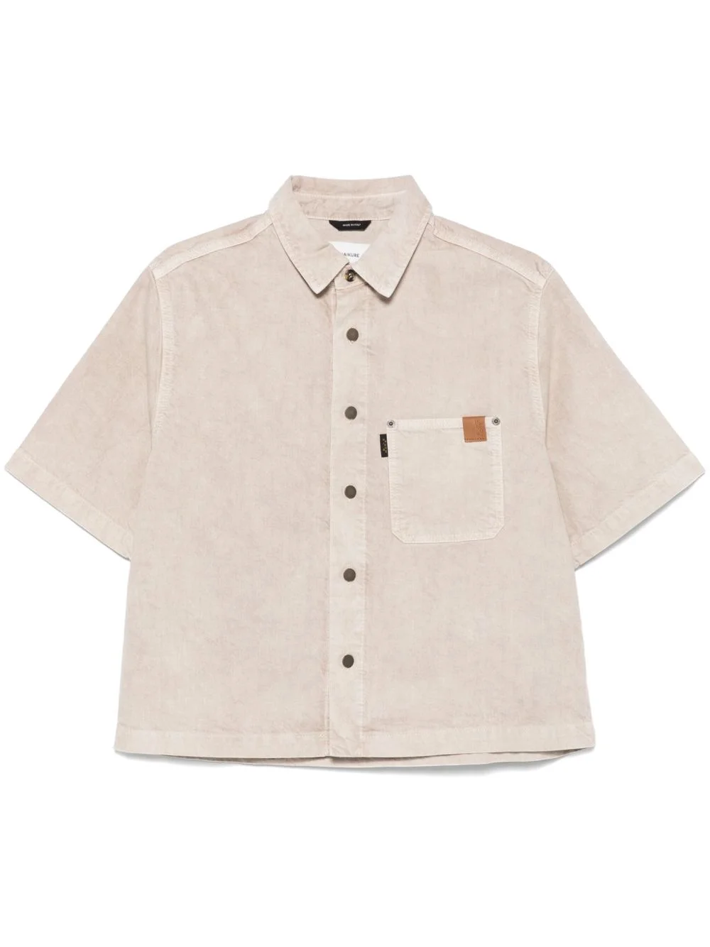 Olive shirt Highlights - Almond beige - Front button fastening - Chest patch pocket - Classic collar - Short sleeves Made in Italy Composition Cotton 85%, Linen/Flax 15% SIZE & FIT Model measurements Height 5 ft 10 in(1.78 m) Bust/Chest 33.46 in(85 cm) Hips 36.22 in(92 cm) Waist 23.22 in(59 cm) FittingInformation Designed for a boxy fit, intended for a loose fit throughout Made from a midweight non-stretch fabric Washing instructions Machine Wash