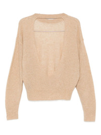 open-back sweater Highlights - Beige - Open back - Round neck - Ribbed hem - Ribbed cuffs - Knitted construction Made in Italy Composition Alpaca 49%, Polyamide 30%, Wool 21% Washing instructions Read Manufacturer Guidelines