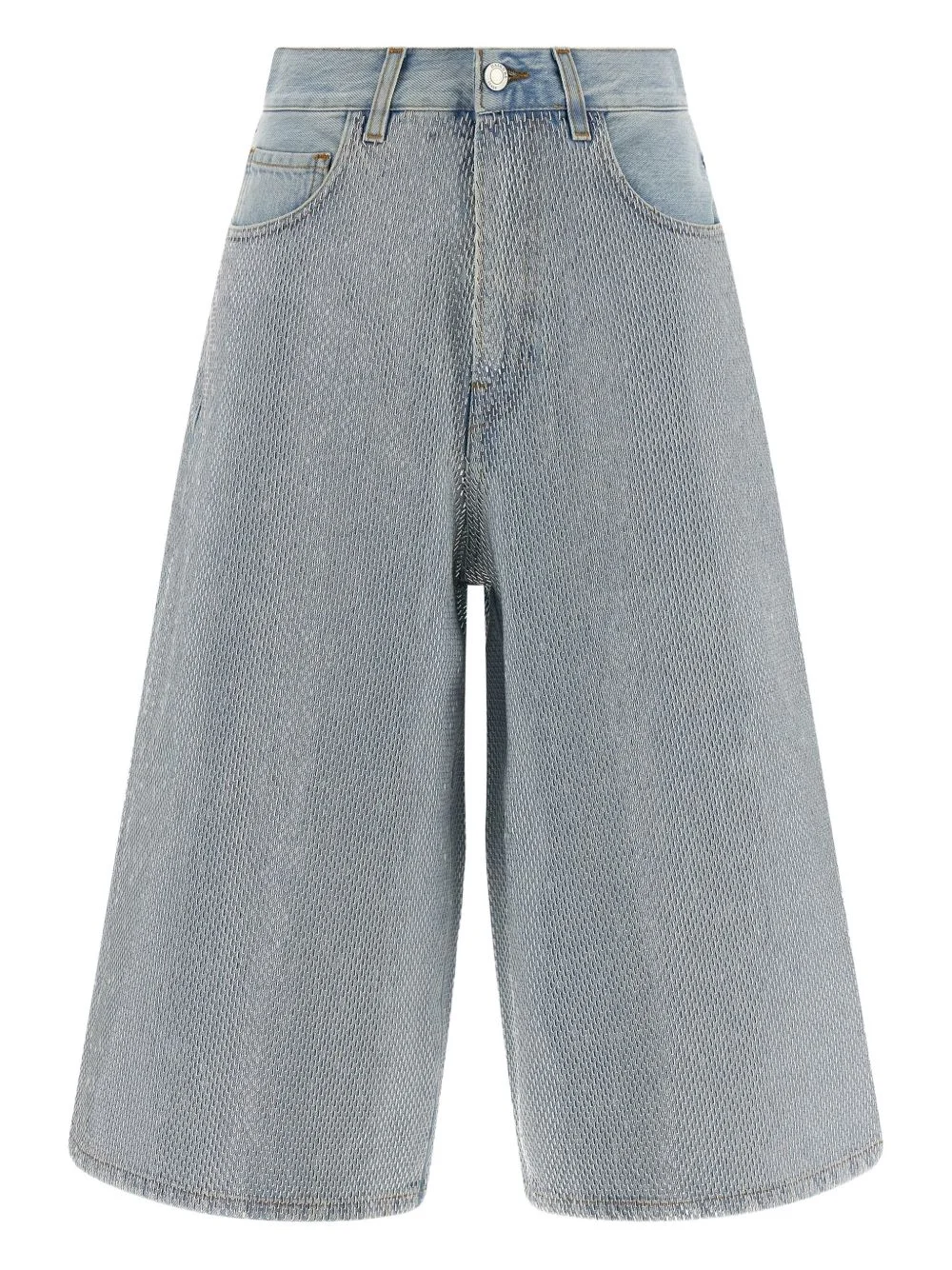 studded denim shorts Highlights - Light blue - Cotton - All-over stud embellishment - Front zip fastening - Button closure - Five pockets Made in Italy Composition Cotton 100% Washing instructions Read Manufacturer Guidelines