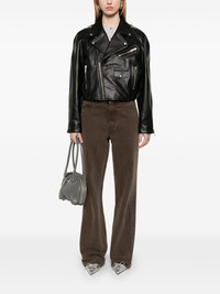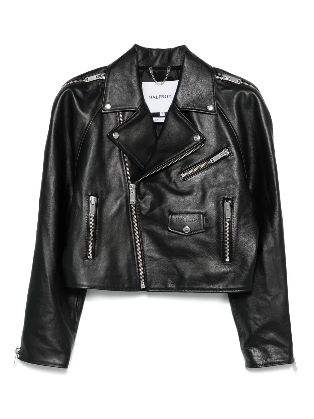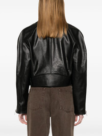 Chiodo biker jacket Highlights - Black - Off-centre front zip fastening - Side zip fastening - Zip-fastening chest pocket - Two side zip-fastening pockets Made in Italy Composition Lining: Viscose 50%, Acetate 50% Outer: Calf Leather 100% SIZE & FIT Model measurements Height 5 ft 9 in(1.75 m) Bust/Chest 31.88 in(81 cm) Hips 34.64 in(88 cm) Waist 24.01 in(61 cm) FittingInformation Designed for a boxy fit, intended for a loose fit throughout Cropped in length Firm leather offering little flexibility to maintain its durability and sturdiness Washing instructions Specialist Cleaning