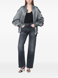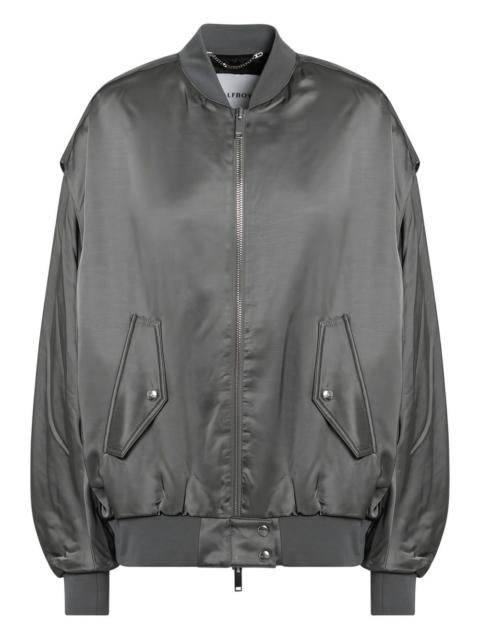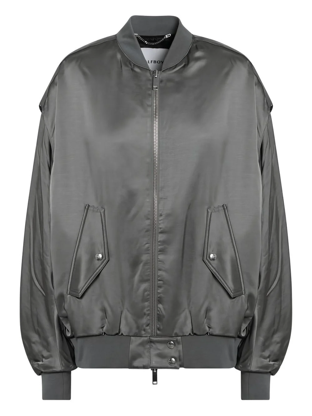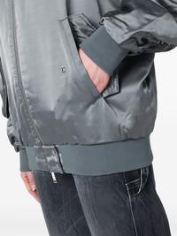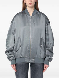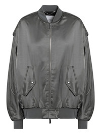 zip-up bomber jacket Highlights - Grey - Front button fastening - Two side flap pockets - Long sleeves Made in Italy Composition Outer: Viscose 100% Lining: Acetate 50%, Viscose 50% SIZE & FIT FittingInformation Designed for an oversized fit, offering additional room throughout The ribbed hem offers a close, comfortable fit Made from a padded non-stretch fabric, giving it no natural elasticity