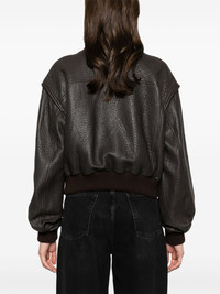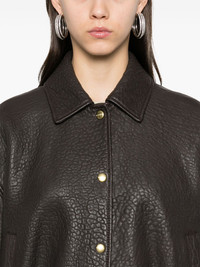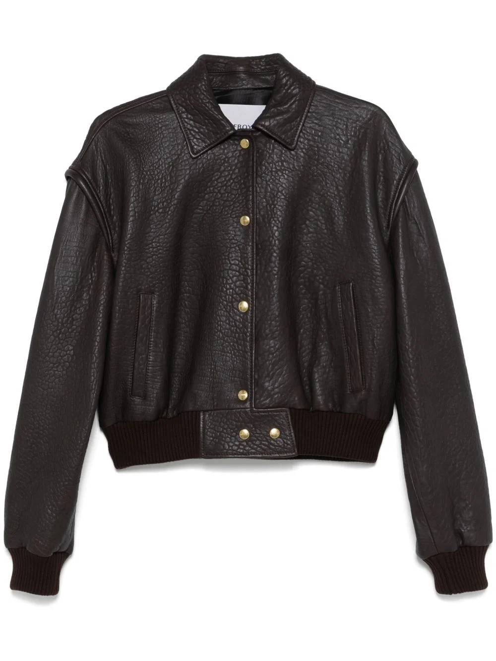 Jet Set bomber jacket Highlights - Cedar brown - Lambskin - Grained texture - Front press-stud fastening - Classic collar - Drop shoulder - Long sleeves - Two side welt pockets - Satin lining - Ribbed cuffs and hem Made in Italy Composition Lining: Viscose 100% Outer: Lamb Skin 100%, Cotton 96%, Polyamide 2%, Elastane 2% SIZE & FIT Model measurements Height 5 ft 10 in(1.78 m) Bust/Chest 33.85 in(86 cm) Hips 36.61 in(93 cm) Waist 26.77 in(68 cm) FittingInformation Designed to be unstructured, offering a loose fit throughout The ribbed hem offers a close, comfortable fit Soft leather has a supple and smooth construction offering some flexibility