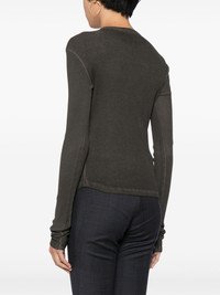 logo-print ribbed cotton T-shirt Highlights - Ash grey - Cotton - Fine ribbed - Logo print at the chest - Round neck - Long sleeves - Straight hem Imported Composition Cotton 100% SIZE & FIT Model measurements Height 5 ft 10 in(1.77 m) Bust/Chest 31.49 in(80 cm) Hips 35.43 in(90 cm) Waist 25.19 in(64 cm) FittingInformation Designed for a slim fit that sits just away from the body offering a close yet comfortable fit Made from a midweight non-stretch fabric, this piece offers minimal elasticity when worn This piece fits true to size – take your usual size Washing instructions Machine Wash