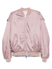 Over bomber jacket Highlights - Rose pink - Front two-way zip fastening - Two side flap pockets - Baseball collar - Logo-jacquard lining Made in Italy Composition Lining: Viscose 50%, Acetate 50% Outer: Viscose 100% SIZE & FIT Model measurements Height 5 ft 9 in(1.75 m) Bust/Chest 31.88 in(81 cm) Hips 34.64 in(88 cm) Waist 24.01 in(61 cm) FittingInformation Designed for an oversized fit, offering additional room throughout The ribbed hem offers a close, comfortable fit Made from a padded non-stretch fabric, giving it no natural elasticity