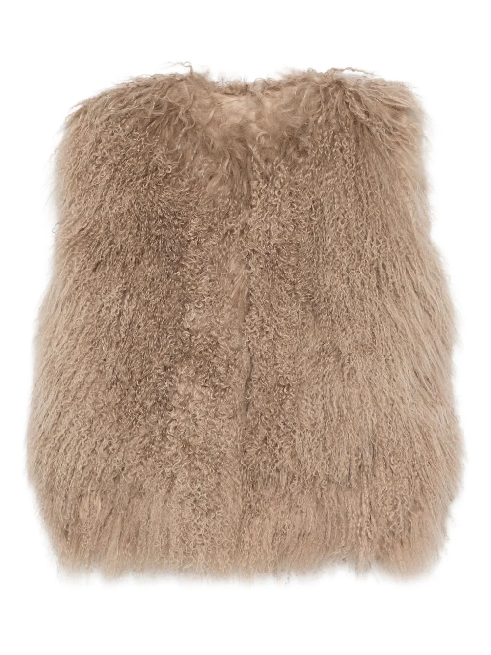 shaggy-texture sleeveless coat Highlights - Beige - Shaggy texture - Sleeveless - Straight hem Imported Composition Polyester 100% SIZE & FIT Model measurements Height 5 ft 10 in(1.77 m) Bust/Chest 32.28 in(82 cm) Hips 35.03 in(89 cm) Waist 25.19 in(64 cm) Washing instructions Read Manufacturer Guidelines